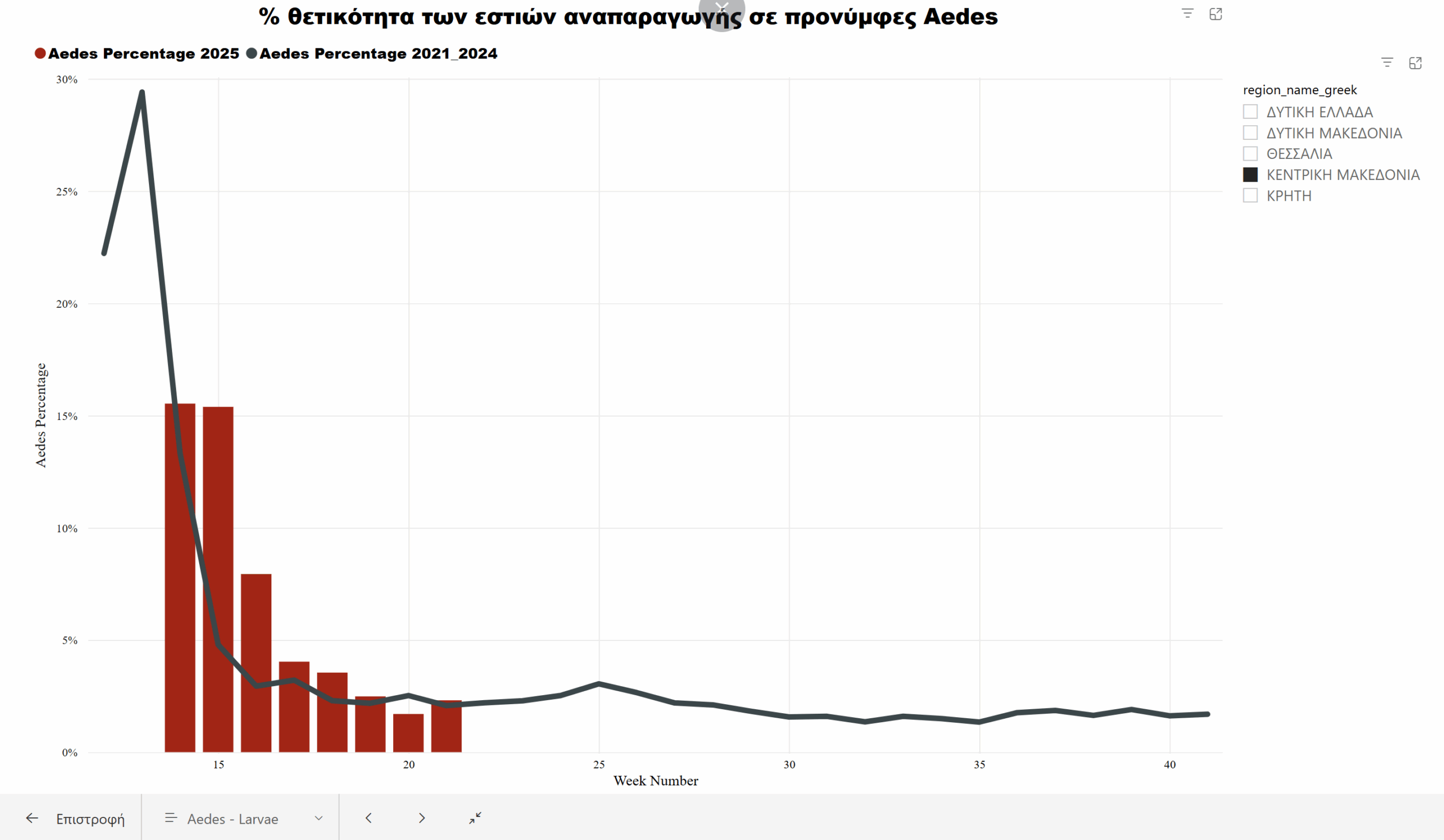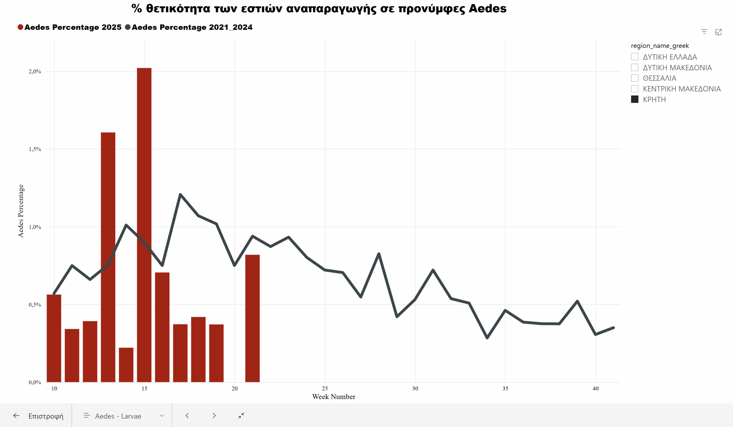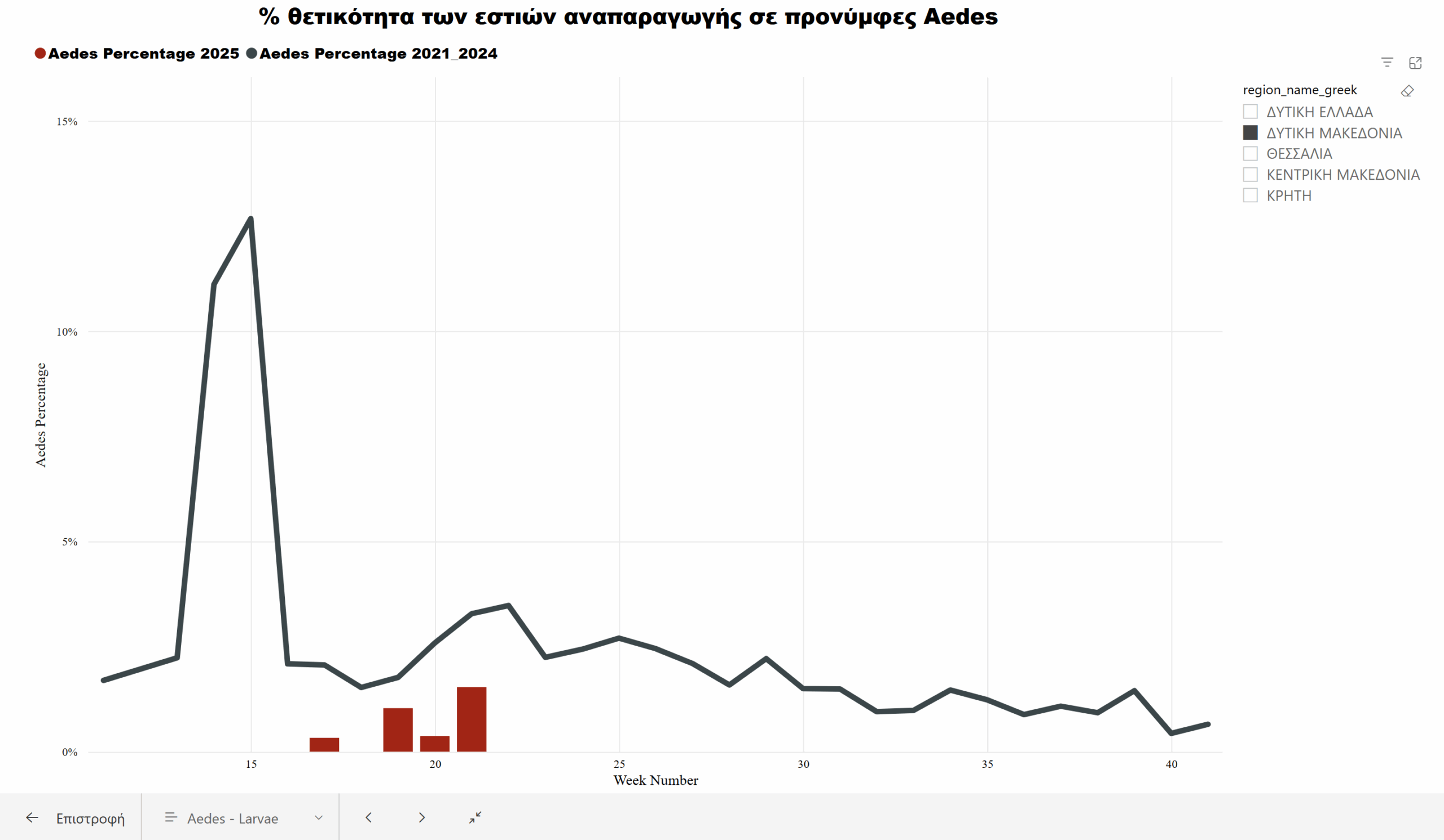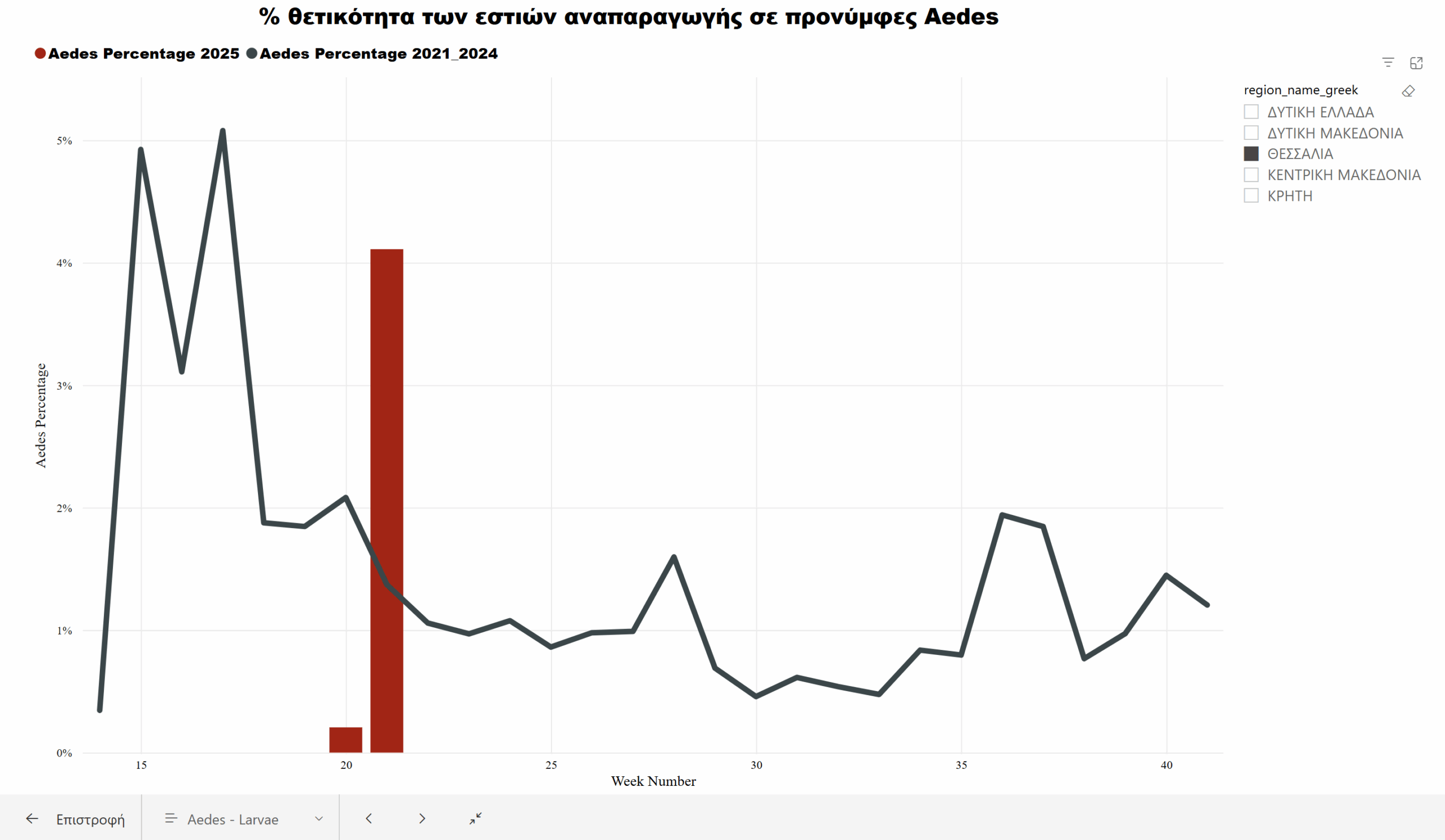 % Θετικότητα των εστιών αναπαραγωγής σε προνύμφες Aedes