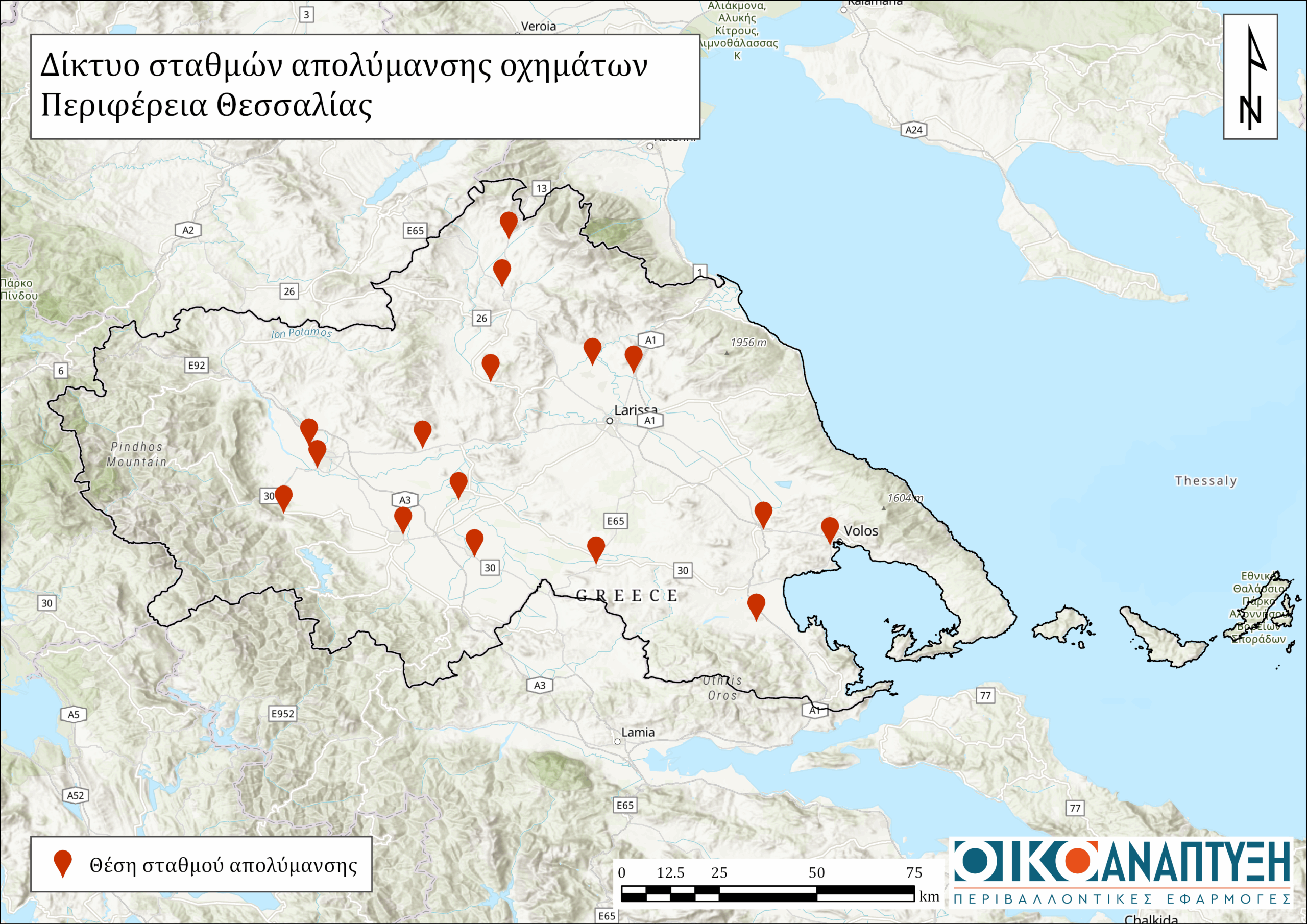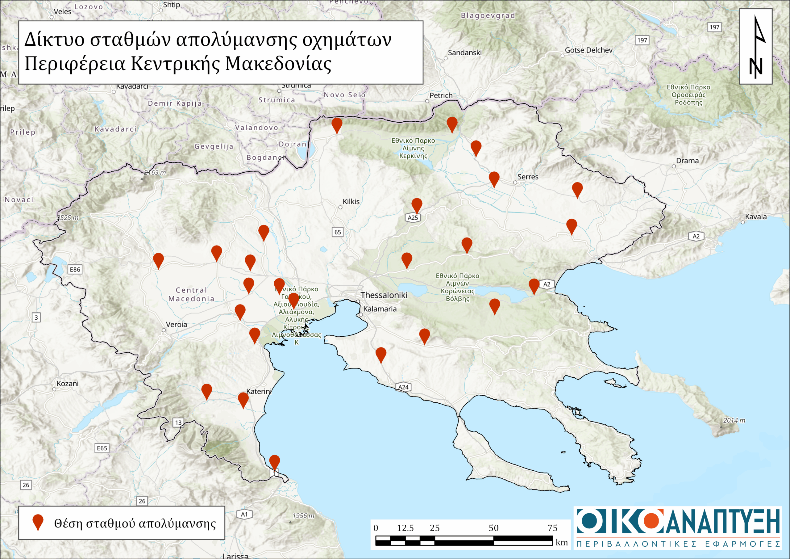 Στο πλαίσιο αυτό, η Οικοανάπτυξη έχει ήδη ολοκληρώσει την εγκατάσταση των 16 σταθμών απολύμανσης στην Περιφέρεια Θεσσαλίας και 25 σταθμών απολύμανσης σε όλη την έκταση της Περιφέρειας Κεντρικής Μακεδονίας (βλ. Χάρτες 1 και 2).