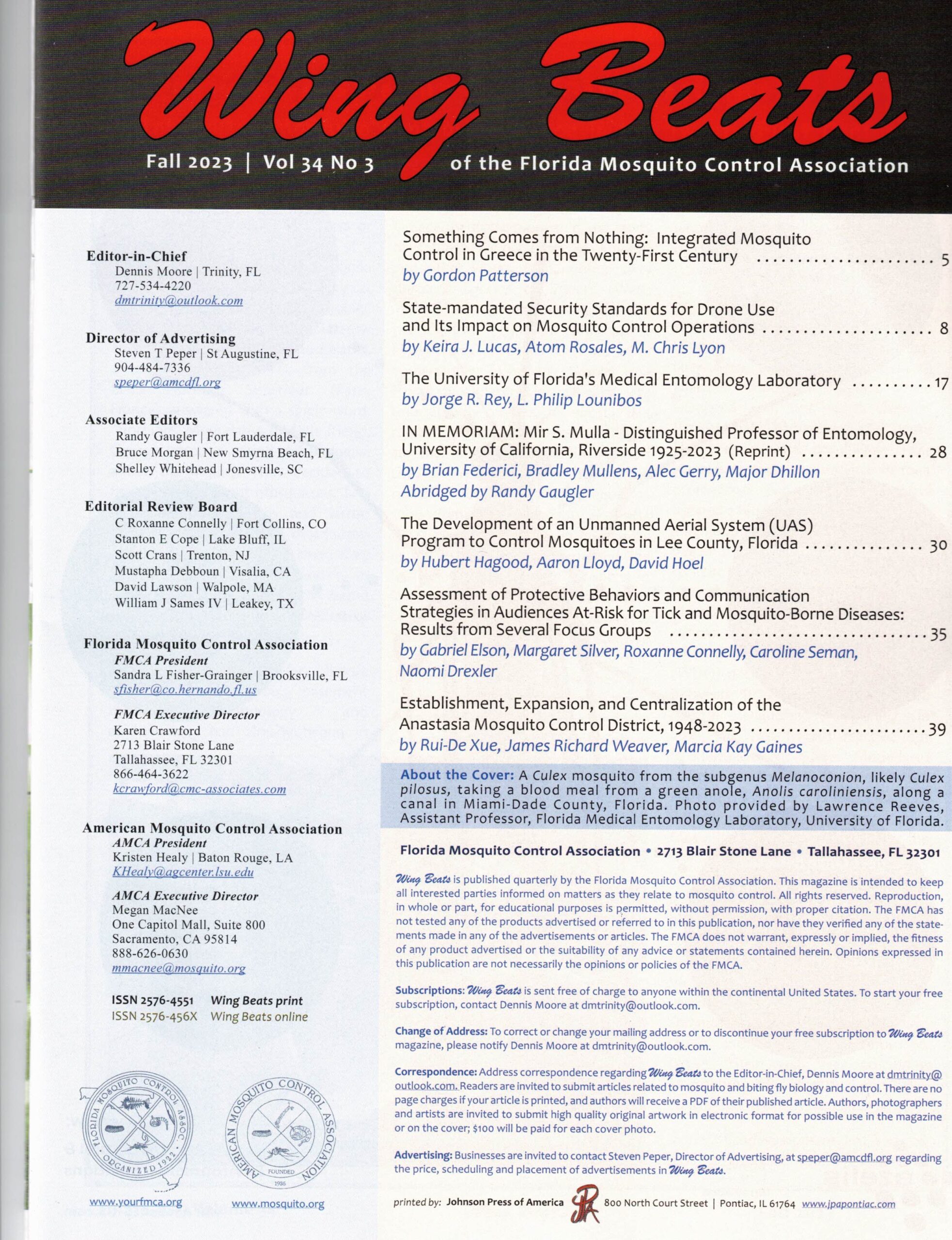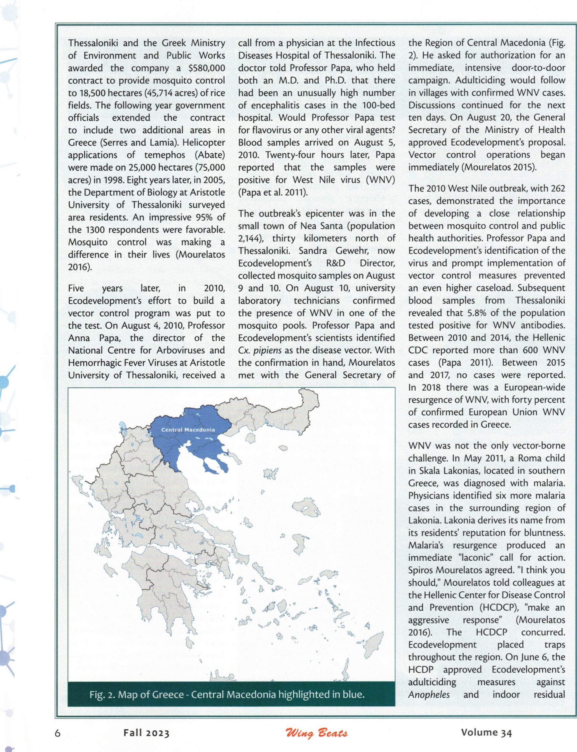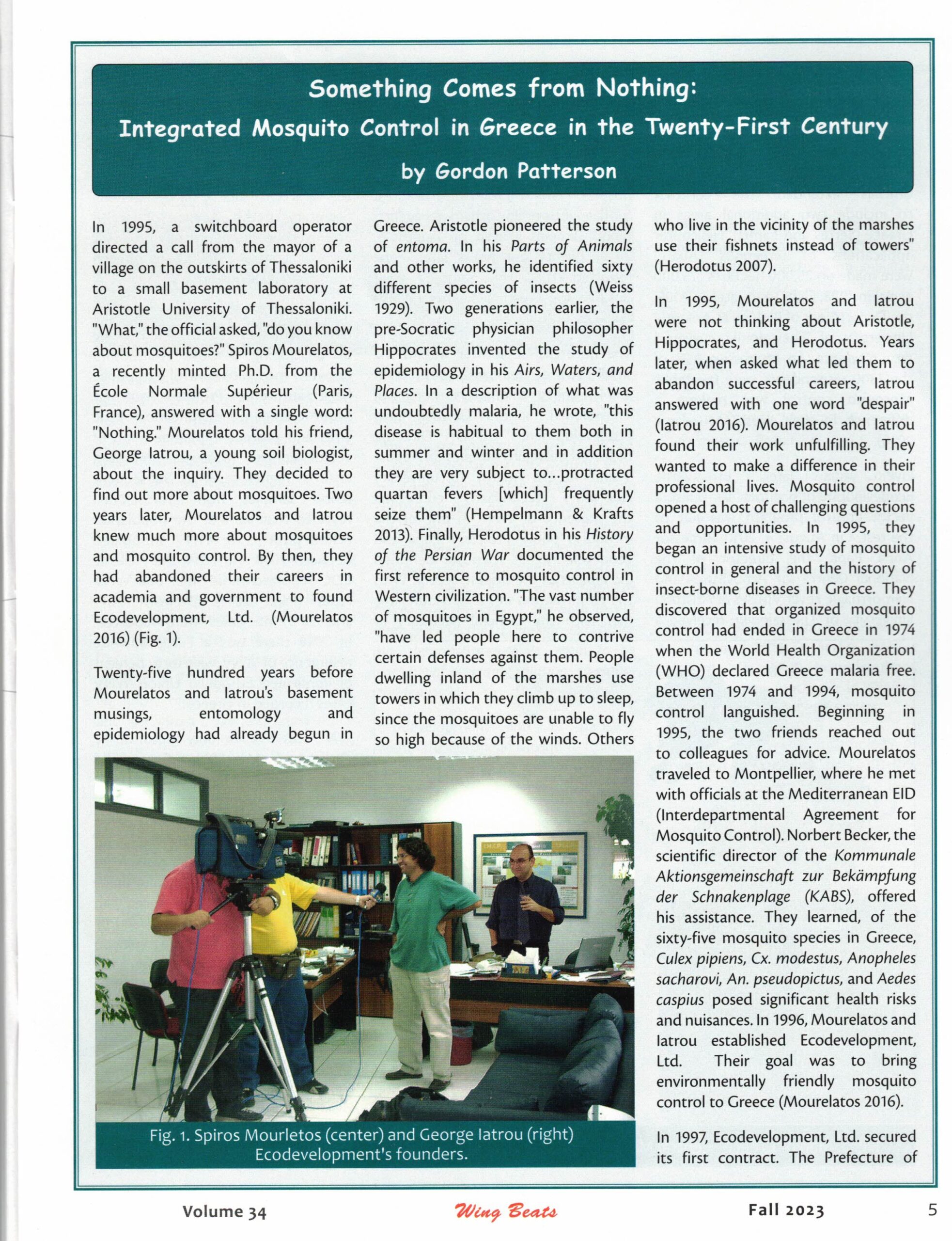 The American historian Gordon Patterson, professor at Florida Tech University and author of the well-known book “The Mosquito Crusades”, recently published an article dedicated to Ecodevelopment in Wingbeats. Wingbeats is the most influential technical magazine devoted exclusively to mosquitoes internationally and is published every three months by the Florida Mosquito Control Association.