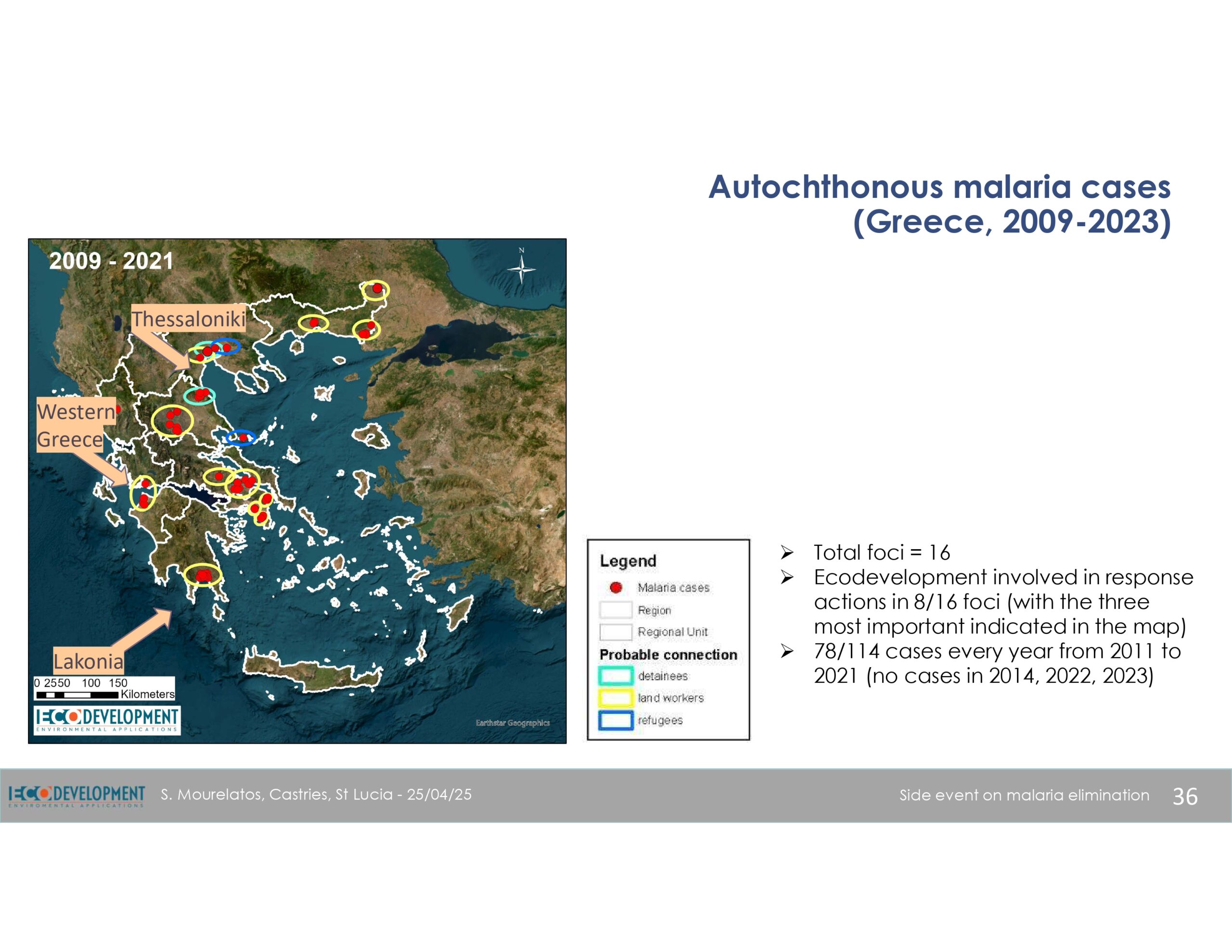 Οι δράσεις αντιμετώπισης της Οικοανάπτυξης για την αποτροπή της επανεγκατάστασης της ελονοσίας στη χώρα μας από το 2011 και μετά, αποτελούν ένα παράδειγμα προς μίμηση για τις χώρες της Καραϊβικής.