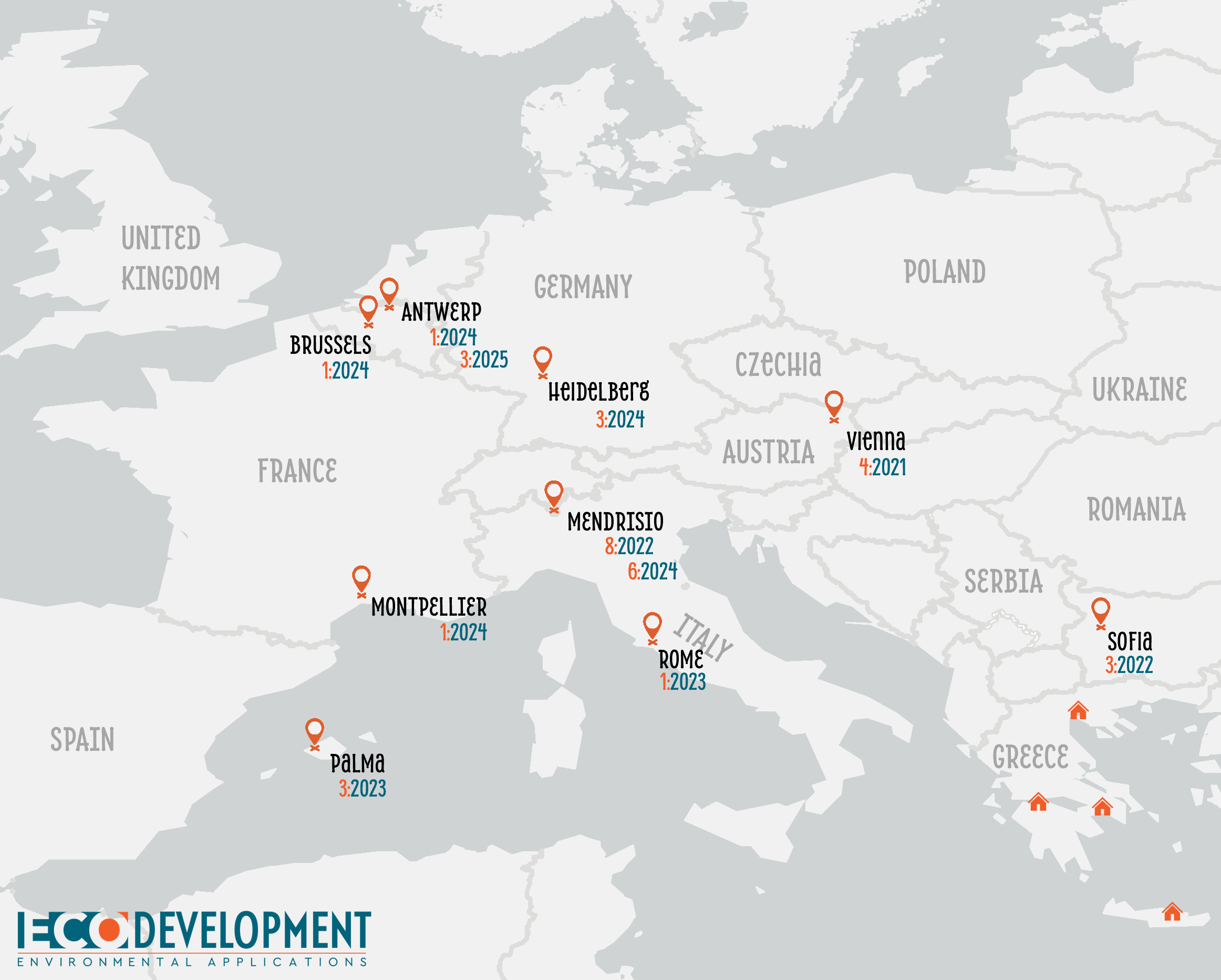 Η διεθνής παρουσία της Οικοανάπτυξης στην μετά-Covid εποχή (2021-2025), είναι εντυπωσιακή. Συνολικά 10 στελέχη της εταιρείας έχουν μεταβεί σε 8 διαφορετικούς προορισμούς εντός Ευρώπης (33 επιμέρους ταξίδια) και δύο στελέχη έχουν πραγματοποιήσει/θα πραγματοποιήσουν ομιλίες σε 12 προορισμούς εκτός Ευρώπης. Η εξωστρέφεια αυτή της εταιρείας αφορά από τη μια τη σταθερή της στόχευση σε σχέση με τη μεταφορά τεχνογνωσίας και εμπειρίας προς τα στελέχη της, και από την άλλη στην ανταπόκριση σε μια σειρά προσκλήσεων για ομιλίες και παρουσιάσεις σε σημαντικές διοργανώσεις εντός και εκτός Ευρώπης.